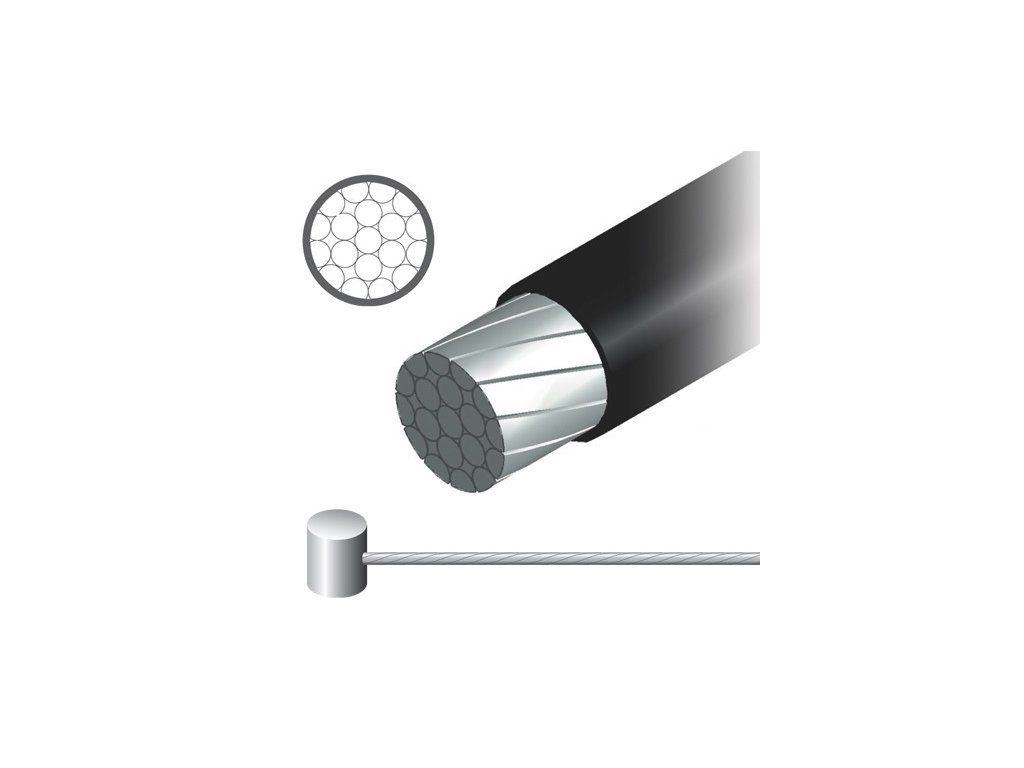 Teflonom potiahnuté brzdové lanko z nehrdzavejúcej ocele 1,5 x 1700mm, lanko potiahnuté teflonom zabezpečuje extrémne ľahký chod a minimálnu potrebnú údržbu, lanko je prednatiahnuté čo zabraňuje naťahovaniu lanka pri používaní, s valčekovou koncovkou 6x7mm pre MTB brzdy Shimano/SRAM, balené v krabici po 100ks.Cena za 1 ks.