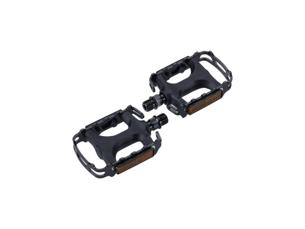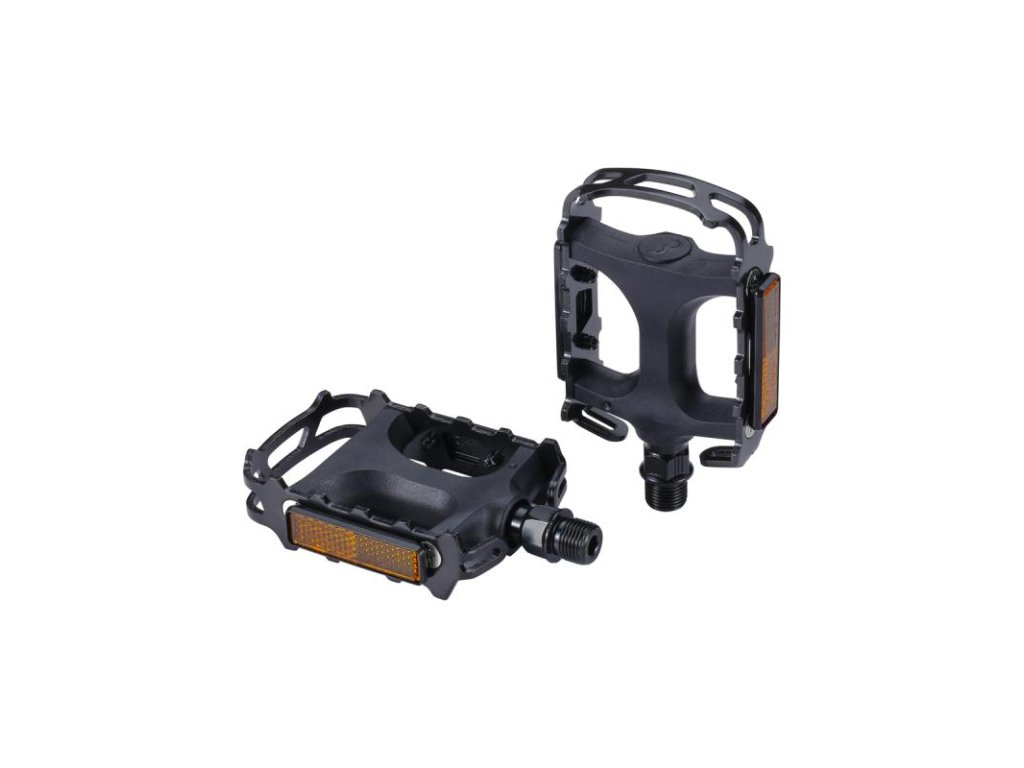 Ľahké pedále s plastovým telom a hliníkovou klietkou.Pevná a odolná CrMo oska.Protišmykový dizajn na oboch stranách pre stabilnú pozíciu chodidiel.Zabudované odrazové sklíčka pre zvýšenú bezpečnosť.Kompatibilné s klipsňami a remienkami BPD-30.Hmotnosť: 235g.