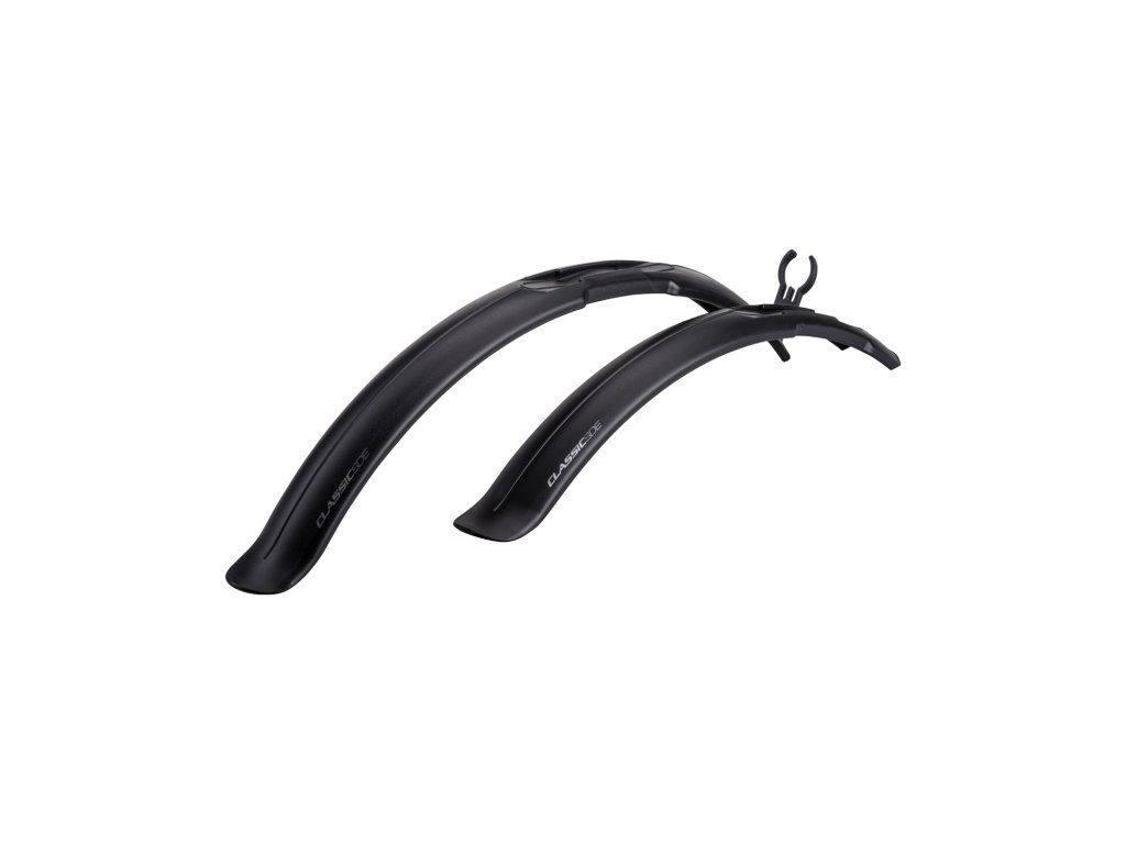 "Kvalitné plastové blatníky s dlhým úchytom pre 24''-26'' bicykle; Uchytenie na kovový držiak, odnímateľné; Váha: 190g; Rozmery: dĺžka/šírka Z ‘ 68 cm/5,5 cm a dĺžka/šírka P ‘ 53 cm /5,5 cm; Farba: čierna"
