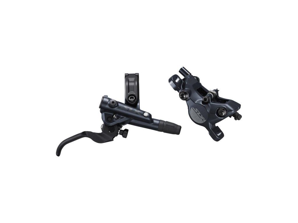 Hydraulická kotúčová brzda SLX M7100. Skladá sa z páky a strmeňa M7100 a hadičky BH90. Brzdy sú naplnené minerálnym olejom a odvzdušnené. Objímka páky kompatibilná pre montáž radenia s úchytom I-Spec EV. Brzdové platničky G03S.