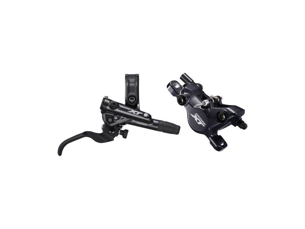 Hydraulická kotúčová brzda XT M8100. Skladá sa z páky a strmeňa M8100 a hadičky BH90. Brzdy sú naplnené minerálnym olejom a odvzdušnené. Objímka páky kompatibilná pre montáž radenia s úchytom I-Spec EV. Brzdové platničky G03S.