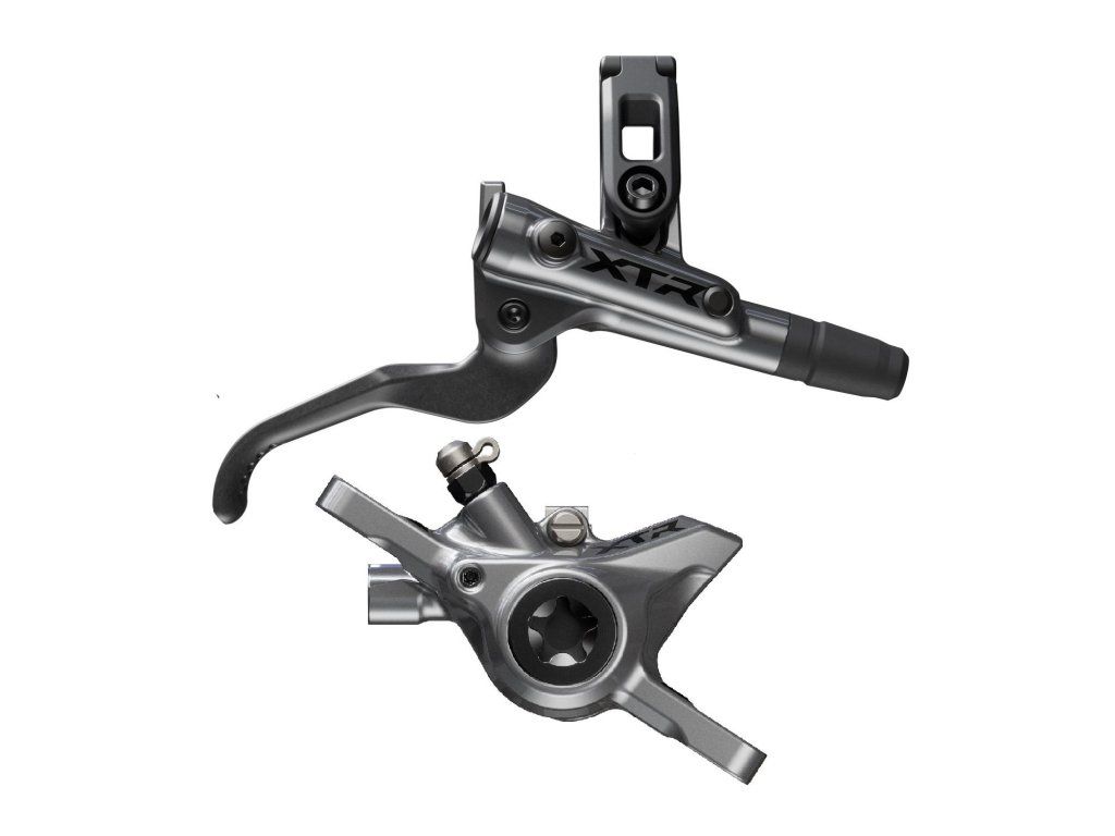 Hydraulická kotúčová brzda M9200. Zložená z brzdovej páky BL-M9200 a strmeňa BR-M9200 bez adaptéra, spojená hadicou BH90-SS. Platničky-resin K05TI.