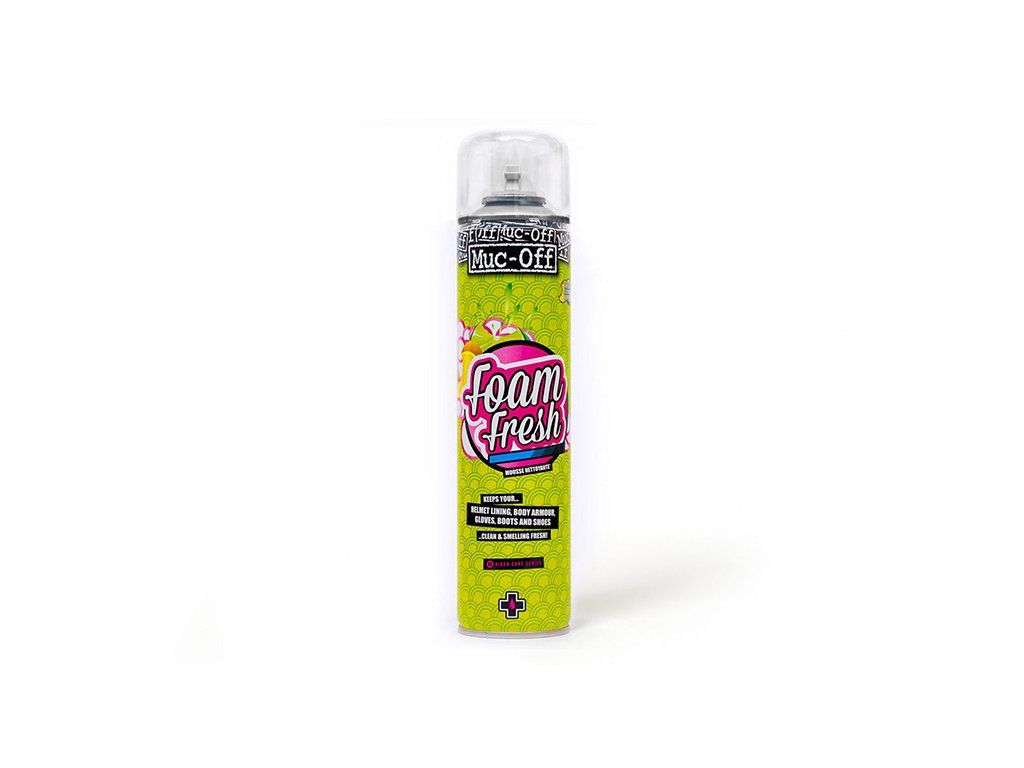 "Muc-Off Foam Fresh je vysoko účinný a súčasne jednoduchý spôsob čistenia výbavy za použitia aktívnej peny; Predstavuje ideálne riešenie pre očistu vnútra heliem, alebo akýchkoľvek, najmä však savých, materiálov prichádzajúcich do styku s ľudským telom; Pokročilá vysoko funkčná čistiaca pena; Rozkladá zápach a biologické nečistoty na molekulárnej úrovni; Aktívne zložky je potrebné nechať niekoľko hodín pôsobiť; Zanecháva sviežu citrónovú vôňu; Všestranné využitie v každodennom živote pri čistení topánok, heliem, rukavíc, chráničov, kombinéz atď; Jednoduchá a rýchla aplikácia určené pre všetkých aktívnych ľudí"