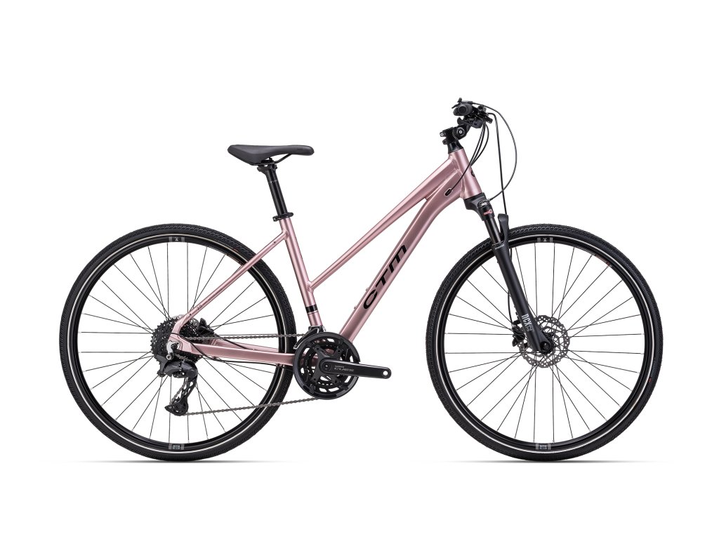 Dámsky bicykel, ktorý je určený na jednoduché presuny po cestách, chodníkoch a nespevnených povrchoch. Znížený rám ponúka vysoký komfort pri nastupovaní a vystupovaní. Výškovo nastaviteľný predstavec umožňuje správne nastaviť pozíciu pri jazde. Vzduchová odpružená vidlica Suntour NCX32 bezpečne stlmí nečakané nárazy. Veľký rozsah prevodov na každý štýl jazdy a plynulé radenie je docielené spoľahlivými komponentami Shimano CUES.