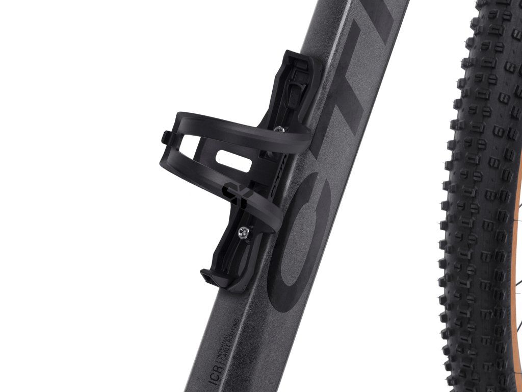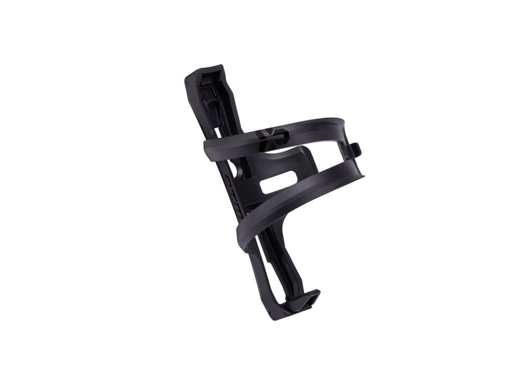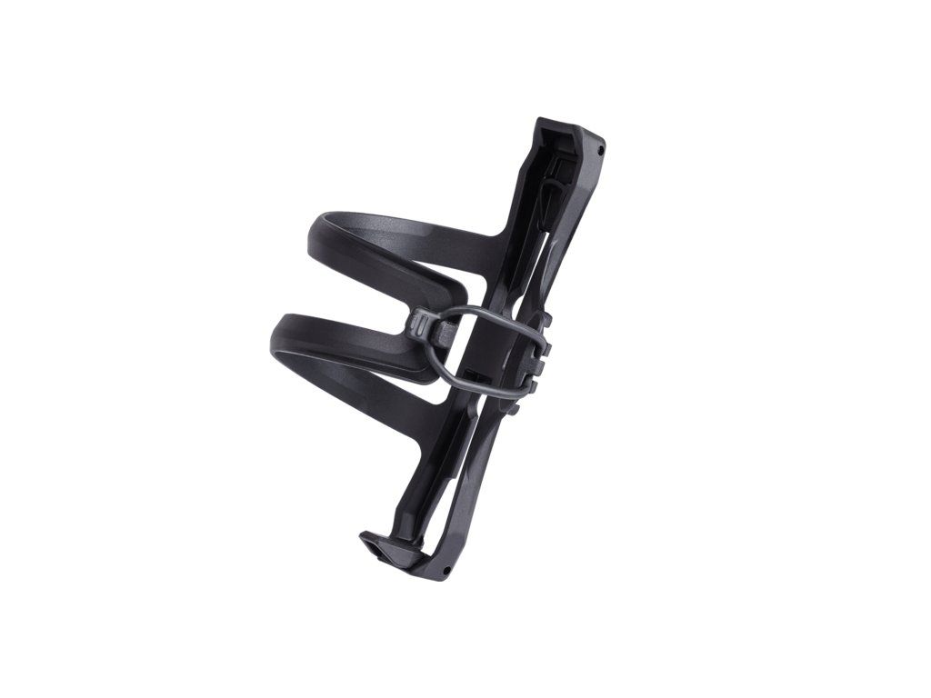Plastový držiak na fľašky s bočným vkladaním; Obojstranný dizajn - možno otočiť na pravú alebo ľavú stranu; Spodnú zarážku možno jednoducho vyklopiť z držiaku podľa toho, na ktorú stranu je držiak otočený; Ideálne riešenie pre rámy s menším vnútorným priestorom pre fľašu; Integrovaná upevňovacia gumička, ktorú možno v prípade potreby použiť na zabezpečenie fľaše v náročnom teréne; Balenie obsahuje skrutky do rámu; Váha: 48g; Farba: matná čierna