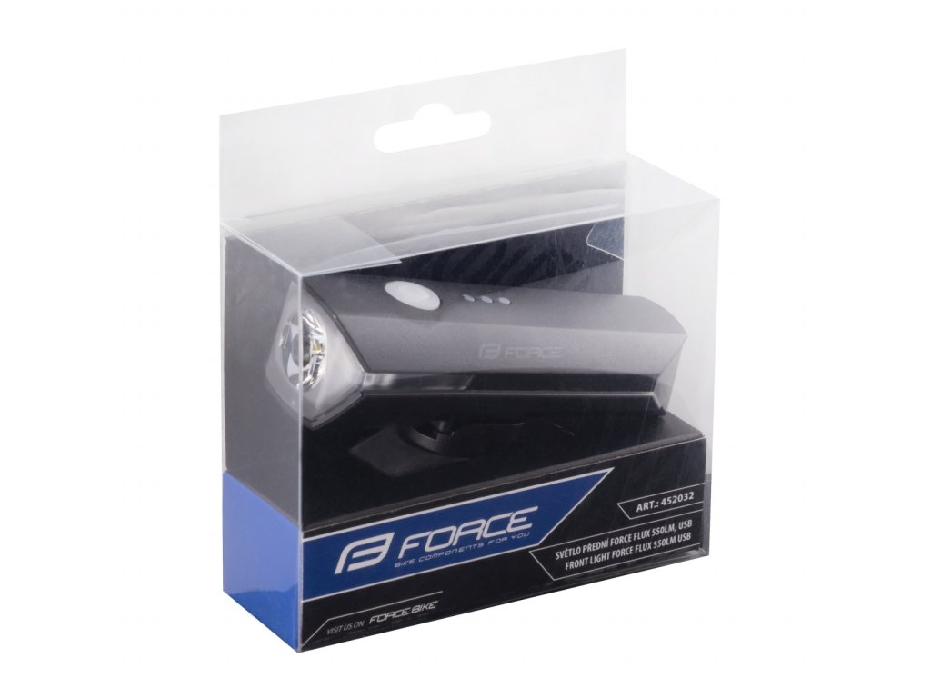 FORCE svetlo predné FLUX 550LM USB, čierne
