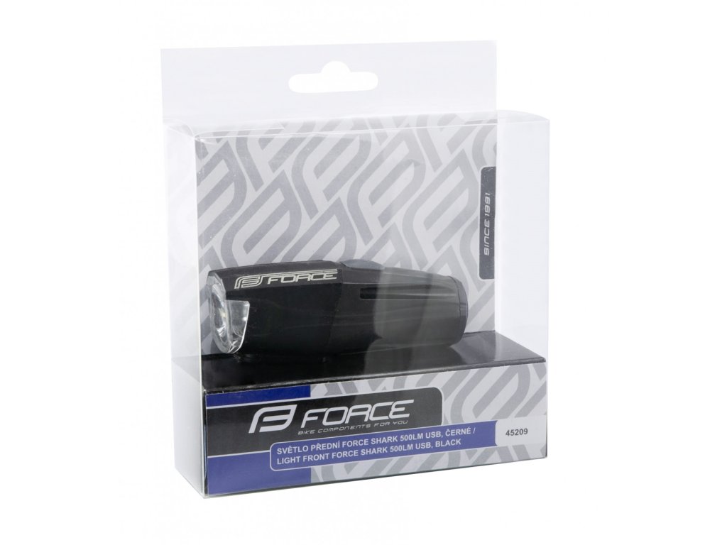 FORCE svetlo predné SHARK 500 Lumenov, USB, čierne