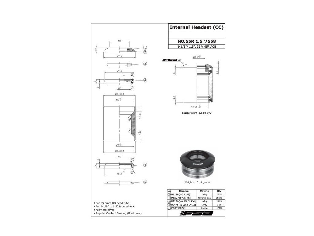 FSA hlavové zloženie NO.55R/558 1.5 ACR RETROFIT w/TH-874-1 B1-OD 55.8