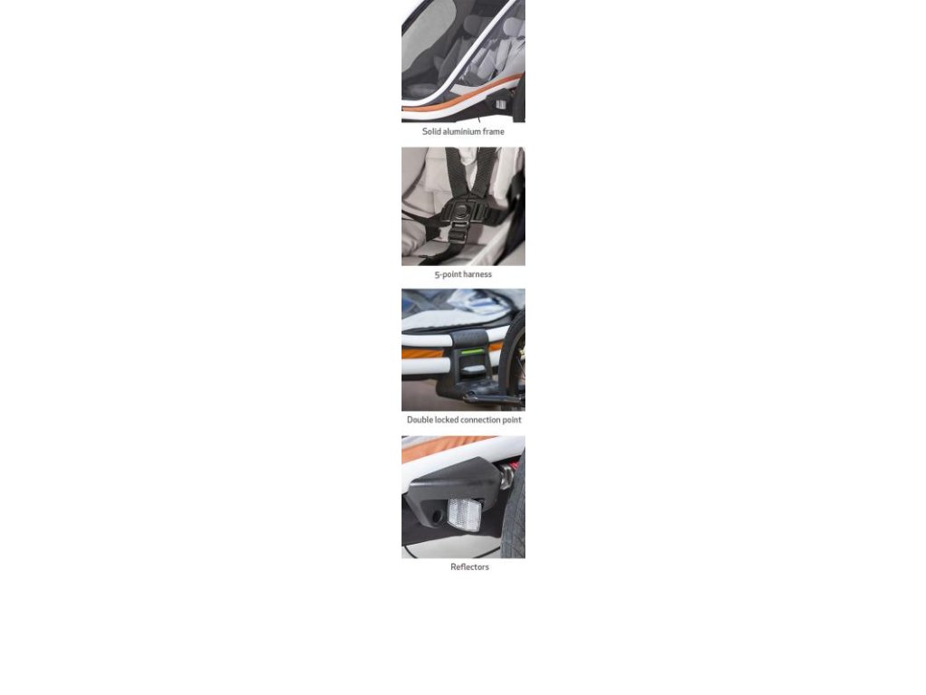 Rerflexná zástavka – voliteľná strana uchytenia Predné 16" koliesko na behanie - potrebné dokúpiť, nie je súčasťou balenia