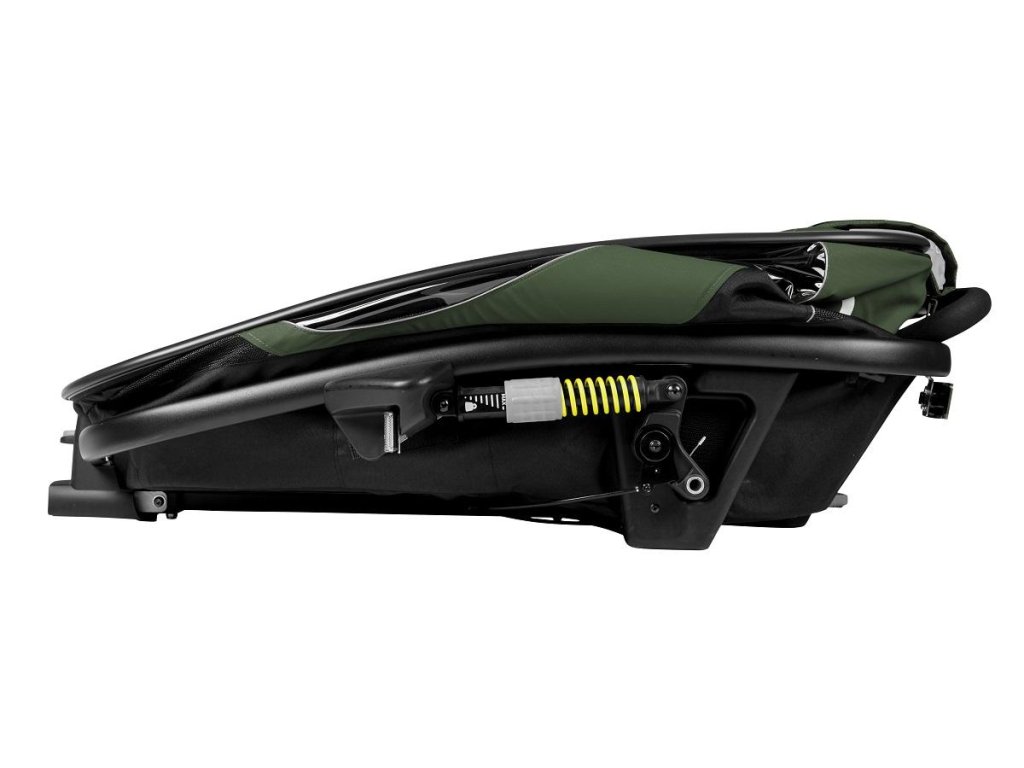 Pevný hliníkový rám poskytuje optimálnu ochranu dieťaťa a veľkorysý priestor v kokpite. Predná časť vozíka je vybavená unikátnym „Safe Connection Point“, ktorý zaisťuje bezpečné prepínanie medzi ramenom na bicykel, kolesom kočíka, kolesom na behanie a ťažným zariadením na lyže.