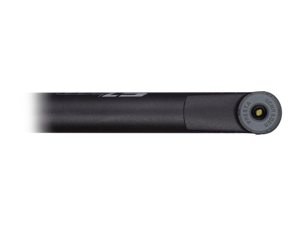 Plastová mini hustilka s duo piestom; Max. tlak: 120PSI; Dĺžka 24 cm; ULH univerzálna hlava hustilky - prispôsobí sa ventilu bez nutnosti otáčania či prepínania vnútorného ventilu; Typ ventilu: auto/presta; Pogumovaná rukoväť pre lepší úchop; Súčasťou je držiak hustilky; Farba: čierna"