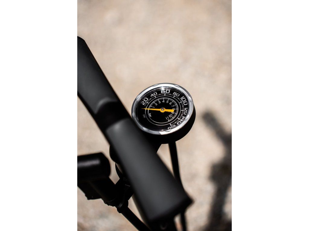 Oceľová servisná hustilka; Odolná a pevná konštrukcia;DLH dvojitá hlava hustilky - prispôsobí sa ventilu bez nutnosti otáčania či prepínania vnútorného ventilu; Ergonomická dvojzložková rúčka ponúka pevný a comfortný úchop pri hustení; Veľká kovová základňa s gumovou obrubou poskytuje veľkú stabilitu pri hustení; Prehľadný 2,5" manometer so (bar/psi) stupnicou; Max. tlak: 160PSI; Typ ventilu: presta/autoventil/schrader; Dĺžka: 66cm; Farba: čierna