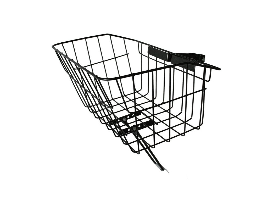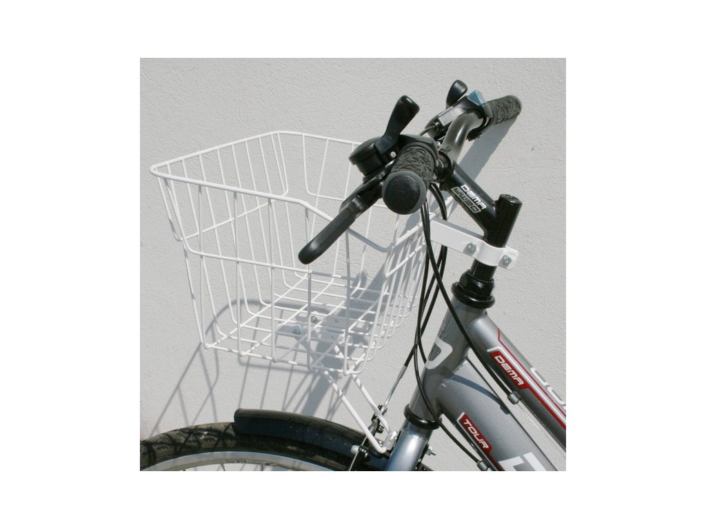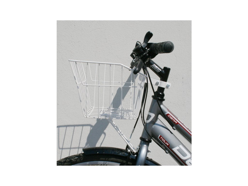drôtový predný košík určený pre mestské bicykle • vhodný na bicykel s 24'-28' kolesami • uchytenie svorkovým držiakom na krk predstavca a spodnou vzperou na prednú vidlicu (pod brzdovú čelusť) • horné rozmery: 360x240 mm • spodn