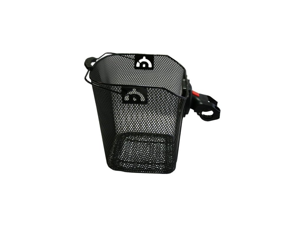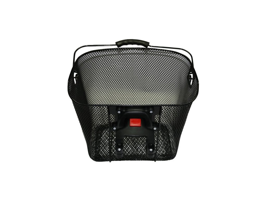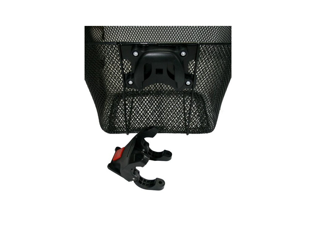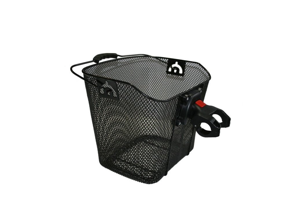 Oceľový sieťový predný košík na riadidlá bicykla s jednoduchým uchytením pomocou vylepšeného a pevnejšieho rýchloupínacieho držiaku.