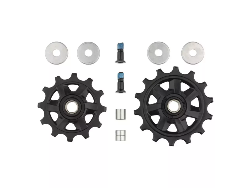 Sada náhradných kladiek (12-zubová vodiaca a 14-zubová napínacia) pre prehadzovačku ADVENT X a SWORD.