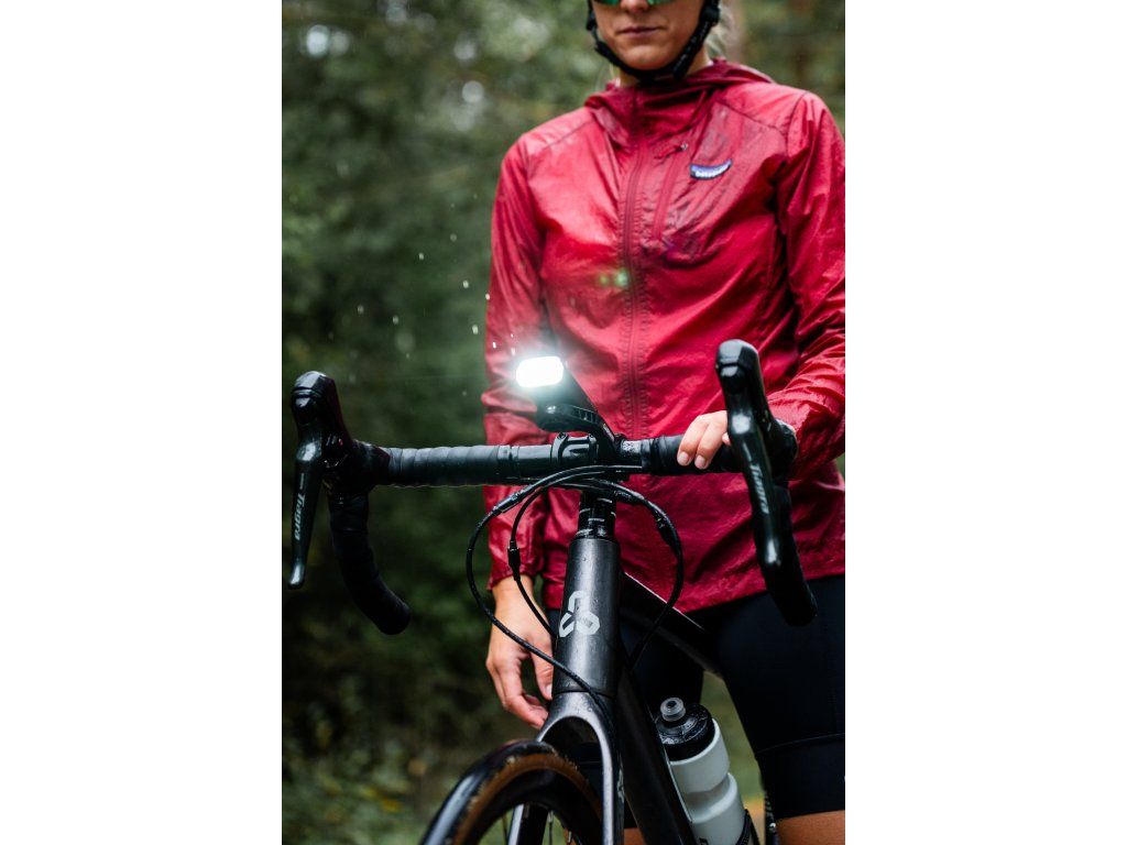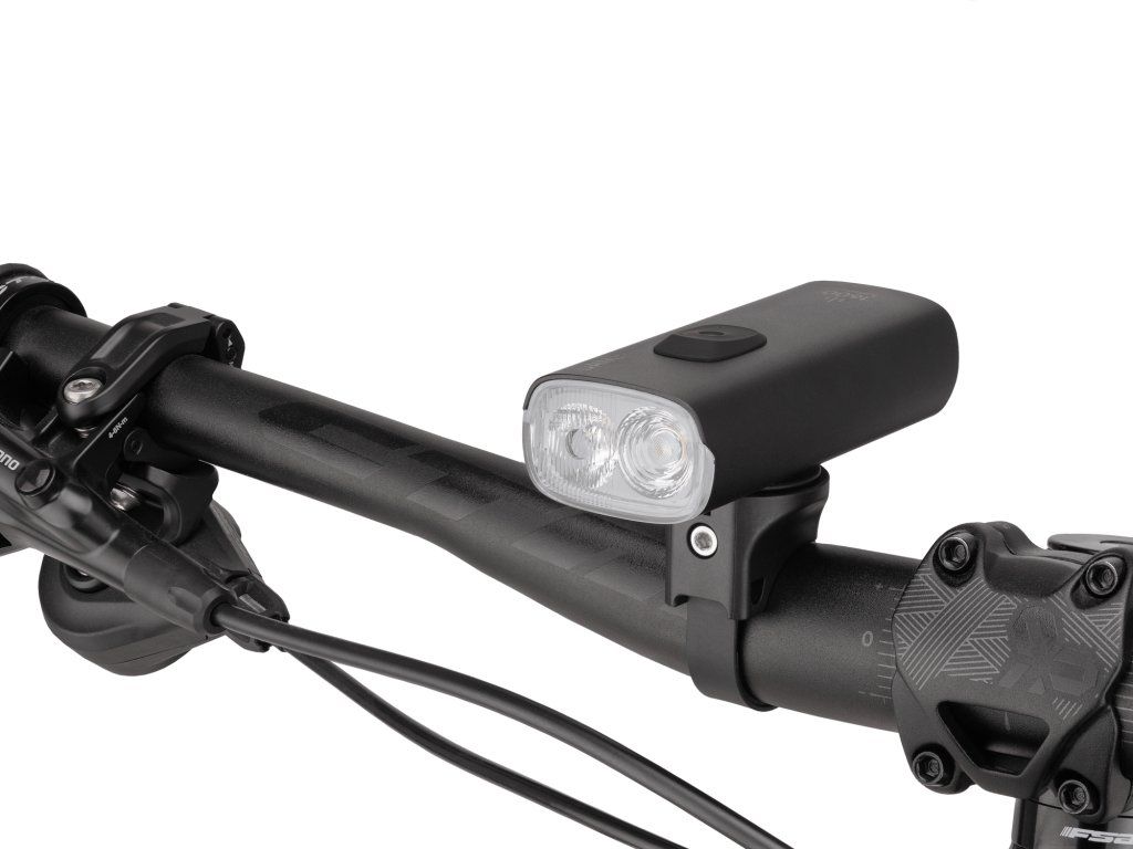 Predné výkonné osvetlenie s možnosťou dobíjania cez USB-C; Svietivosť: 1600 lumenov (2x Luminus SST-40-WCS-F50-P2/N5); Nová dvojitá šošovka so záplavovým širokým lúčom do blízka v kombinácii s ďalekým bodovým lúčom je ideálne pre použitie na ceste aj na trailoch; Diaľkový ovládač na riadidlá pre jednoduchšie ovládanie funkcií; Powerbank funkcia (5V 2A); Ľahká a kompaktná konštrukcia z prémiového hliníku; Dosah svetelného lúča 140m s neoslňujúcim rozptylom; Funkcie: záplavové svetlo (13%-25%-50%) - hybridné (diaľkové) svetlo (25%-50%-100%) - blikanie denné (0%-100%) - blikanie nočné (25%-100%); Výdrž batérie podľa režimu: záplavové svetlo 13% (10:00h) – 25% (4:30h) – 50% (3:00h) / hybridné (diaľkové) svetlo 25% (4:30h) – 50% (3:00h) – 100% (1:30h) / blikanie denné (12:00h) – blikanie nočné (2:30h); Vodoodolné IPX7 do hĺbky 1m; Pamäť režimov; Batéria 21700 s 3,6V 5400 mAh s indikátorom stavu batérie a dobou dobíjania 2,5 hodiny; Prepínanie medzi režimami dvojklikom vypínača, medzi jasom kliknutím a vypnutie/zapnutie podržaním vypínača; Krátke stlačenie vypínača aktivuje indikátor batérie (ak je svetlo vypnuté); Univerzálne montáže pre rôzne priemery riadidiel (25,4-35mm) s Garmin základňou (kompatibilné); Balenie obsahuje USB-C kábel, základňu na riadidlá s vymeniteľnými popruhmi, Gopro platničku, 3mm kľúč; Rozmer: 96x41x27 mm; Váha: 190g; Farba: čierna