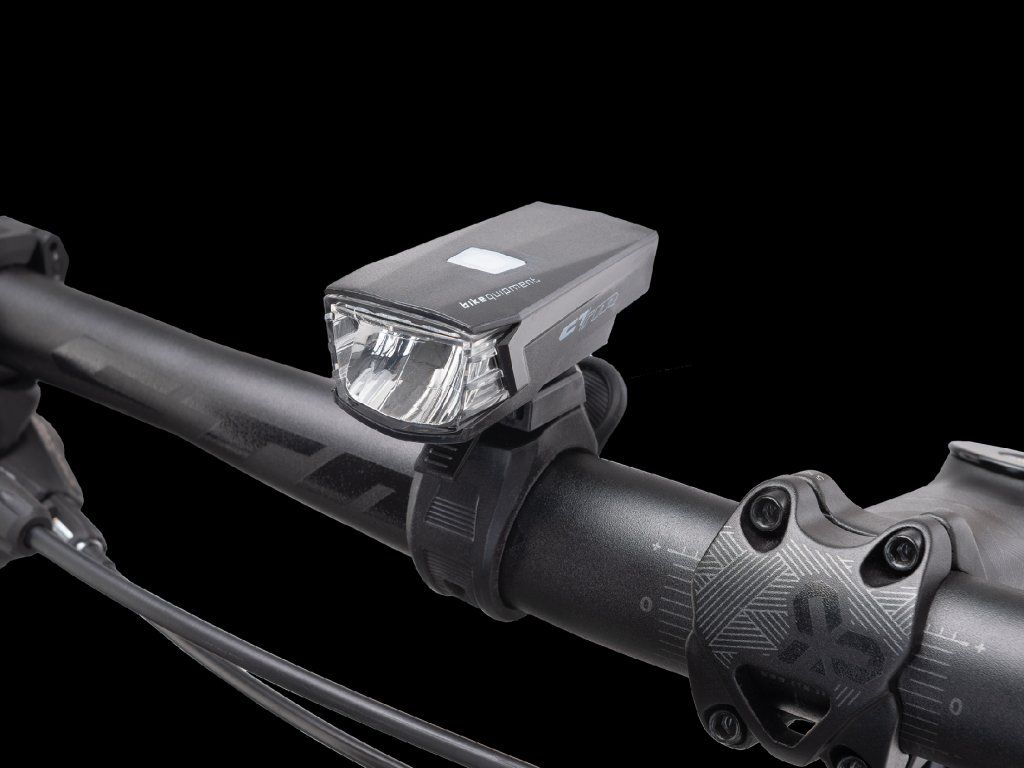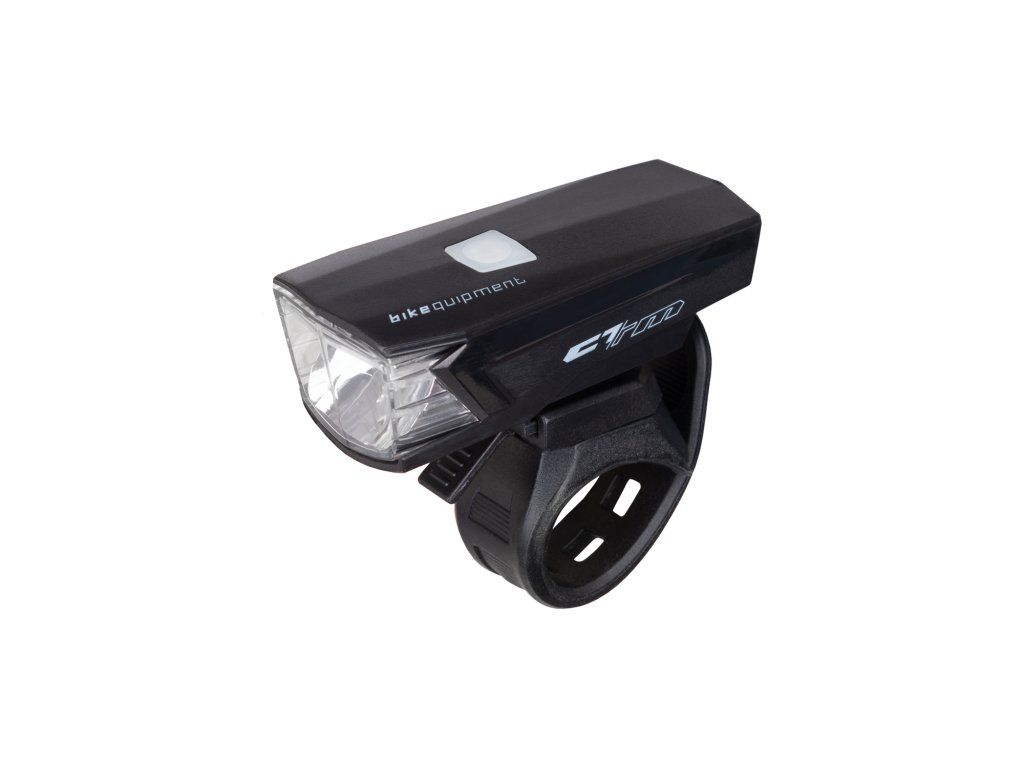 Predné svetlo s bielou LED diódou a možnosťou dobíjania cez USB; Svietivosť: 300 lumenov; Funkcie: svetlo: 50% (7h) - 100% (3,5h); Vypnutie svetla podržaním vypínača; Vodeodolná konštrukcia; Lítiová batéria 3.7V 1200 mAh s dobou nabíjania 3-4 hodiny a ochranou prebitia/podvybitia; Indikátor stavu batérie; Balenie obsahuje USB kábel; Rýchla montáž bez náradia; Farba: čierna"