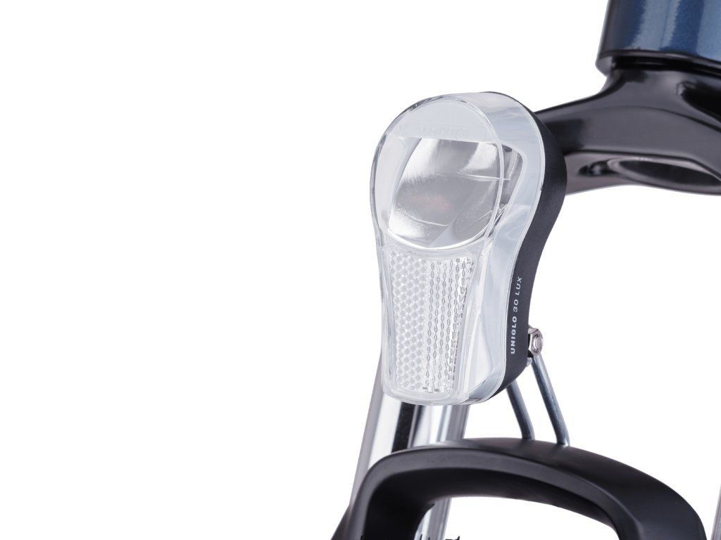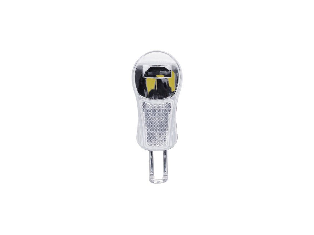 Predné osvetlenie s 1 výkonnou LED žiarovkou; Spĺňa normu StVZO; Funkcie: 100% - 50%; Vodoodolné konštrukcia; Upevnenie na vidlicu; Batérie: 2 x AA; Rozmer: 92x47x46 mm; Váha: 78g; Farba: strieborná