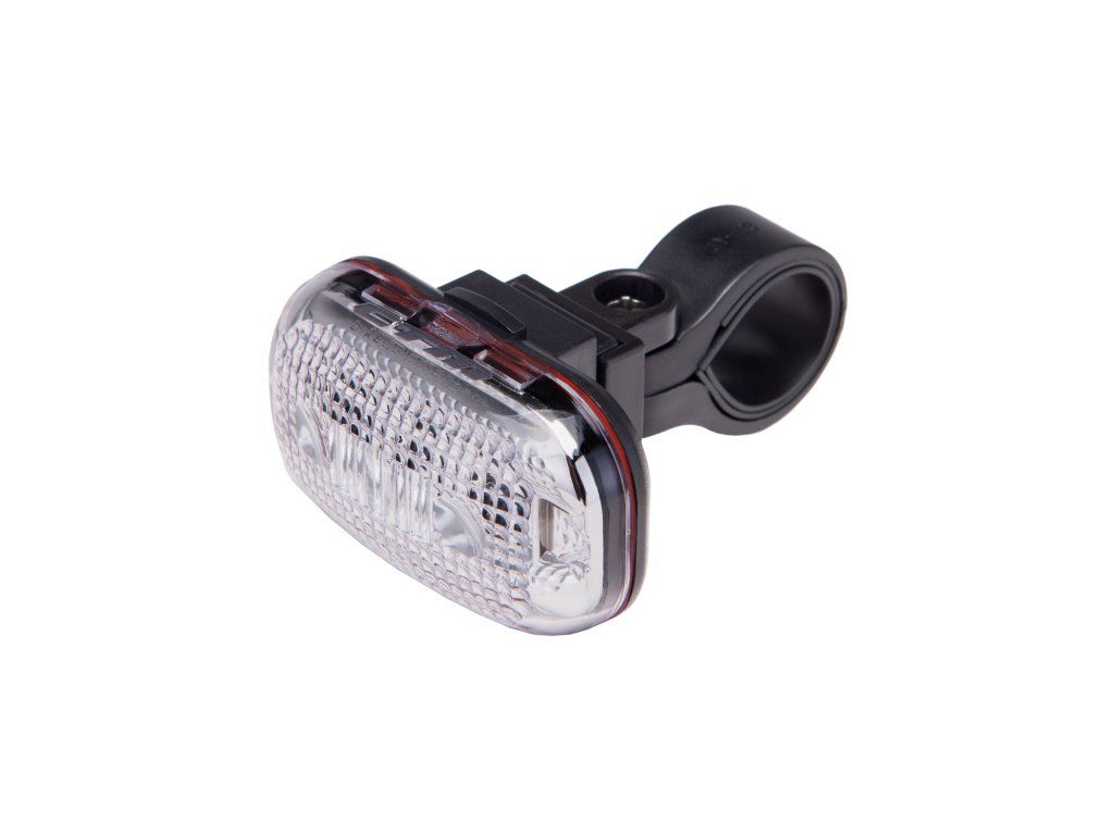 Predná blikačka s tromi LED diodami; Funkcie: bilikanie - posúnanie - stále svetlo; Balenie obsahuje: 2 ks AAA batérie; Farba: čierna"