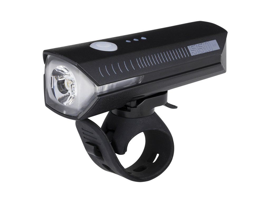 Nabíjateľné predné svetlo s maximálnym výkonom 550 LM. Svetelný zdroj: jedna LED dióda