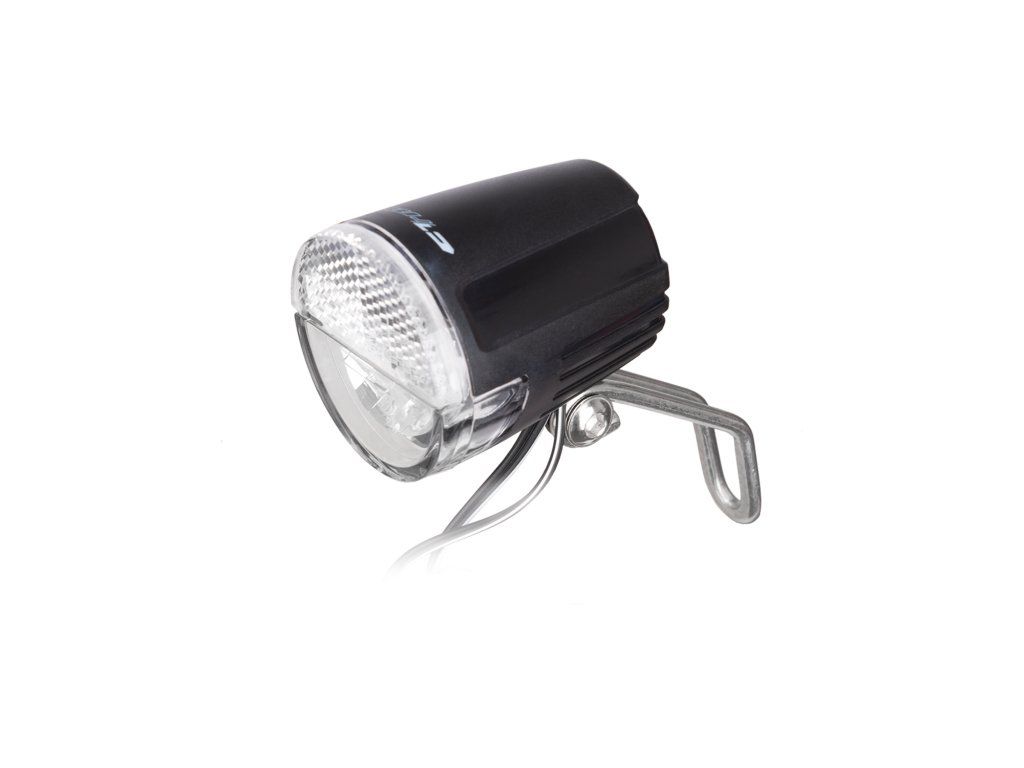 Predné svetlo na dynamo s odrazkou; Svietivosť: 30LUX; Funkcie: automatický senzor - stále svetlo; Napájanie na 6V/2,4W alebo 6V/3W; Montáž na vidlicu; Farba: čierna