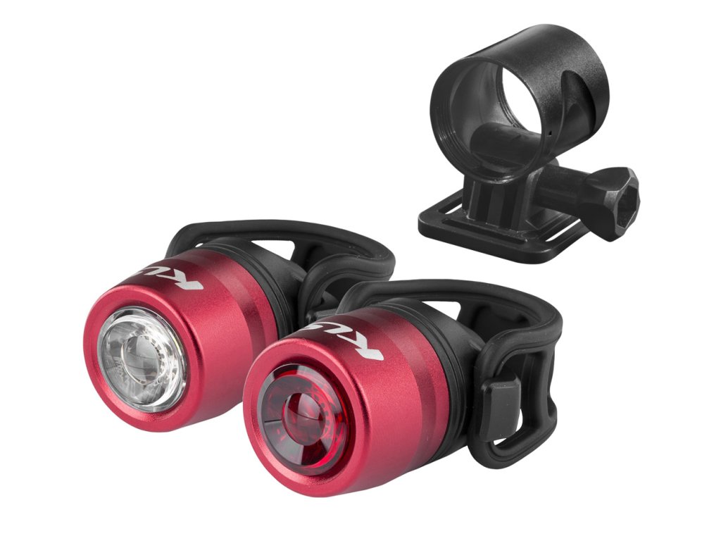 KLS :IO SET USB obsahuje dve kompaktné - predné a zadné svetlo do každého počasia. Vďaka hliníkovému telu s čistým dizajnom, dokonale opracovanému na CNC sústruhu a možnosti pripevnenia bez použitia náradia je :IO ľahký a odolný bezpečnostný doplnok, ktorý sa hodí na každý bicykel. Dodatočný držiak na helmu umožňuje pripnutie celej súpravy na vrchol helmy tak, aby ste boli viditeľní ešte viac a cítili sa ešte bezpečnejšie. Aby držiak ostal využitý aj za dňa, môžete na neho pripevniť svoju HD kameru.