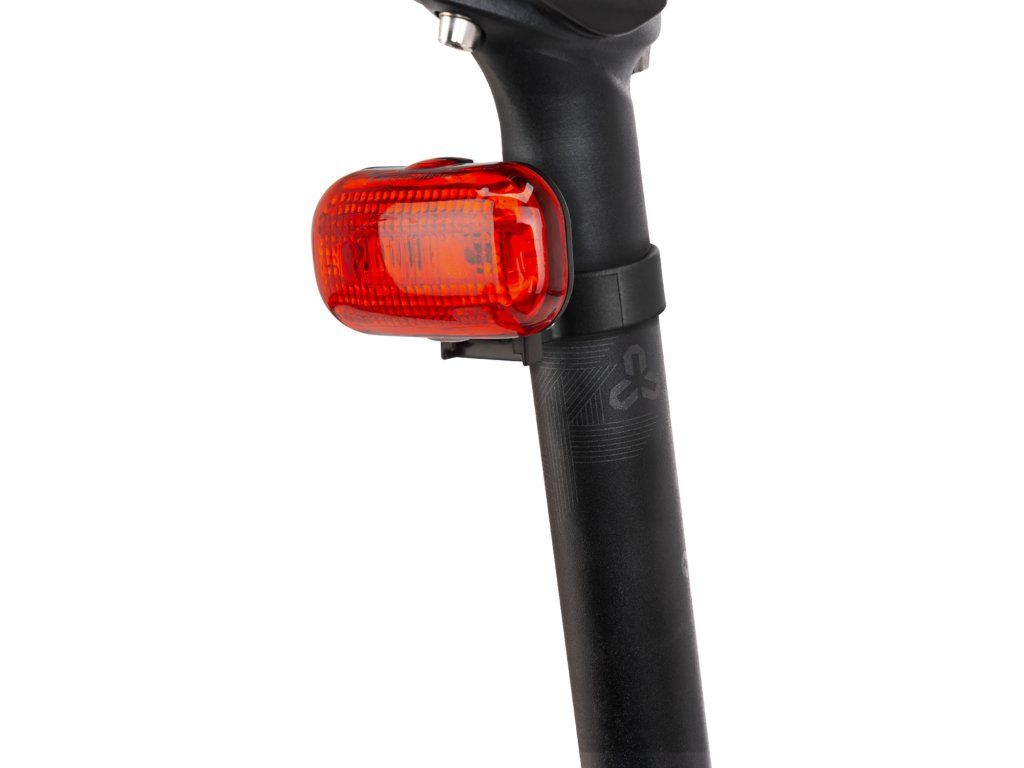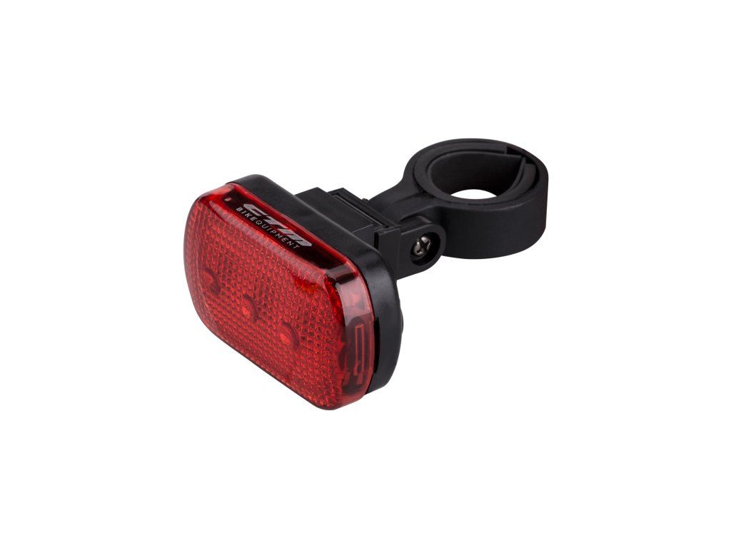 Zadná blikačka s tromi červenými LED diódami; Funkcie: bilkanie - posúvanie - stále svetlo; Balenie obsahuje 2 ks AAA batérie; Farba: čierna"