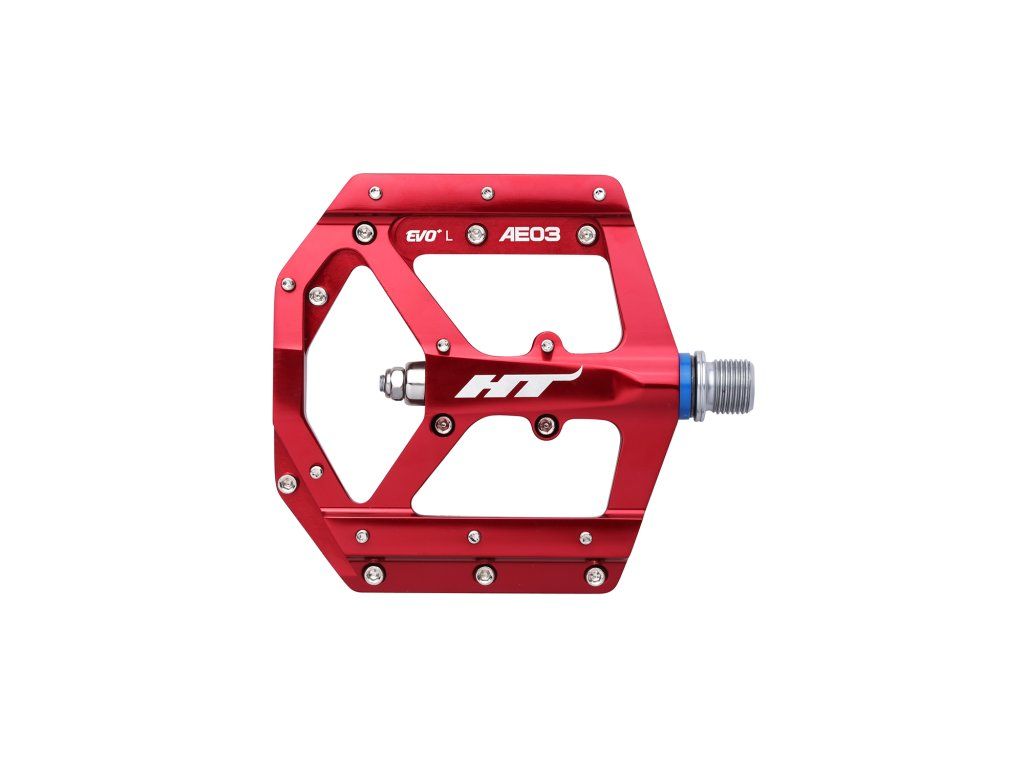 MTB ľahké platformové pedále z hliníku; Extra nízky profil pedálu, len 11mm; Telo: CNC AL 7075; 12 mm oska z CNC CrMo; Ložiská: EVO+ systém / IGUS púzdra; Vymeniteľné SAP piny - 10 z každej strany; Váha: 352g; Rozmer: 102 x 96 x 11 mm; Farba: červená