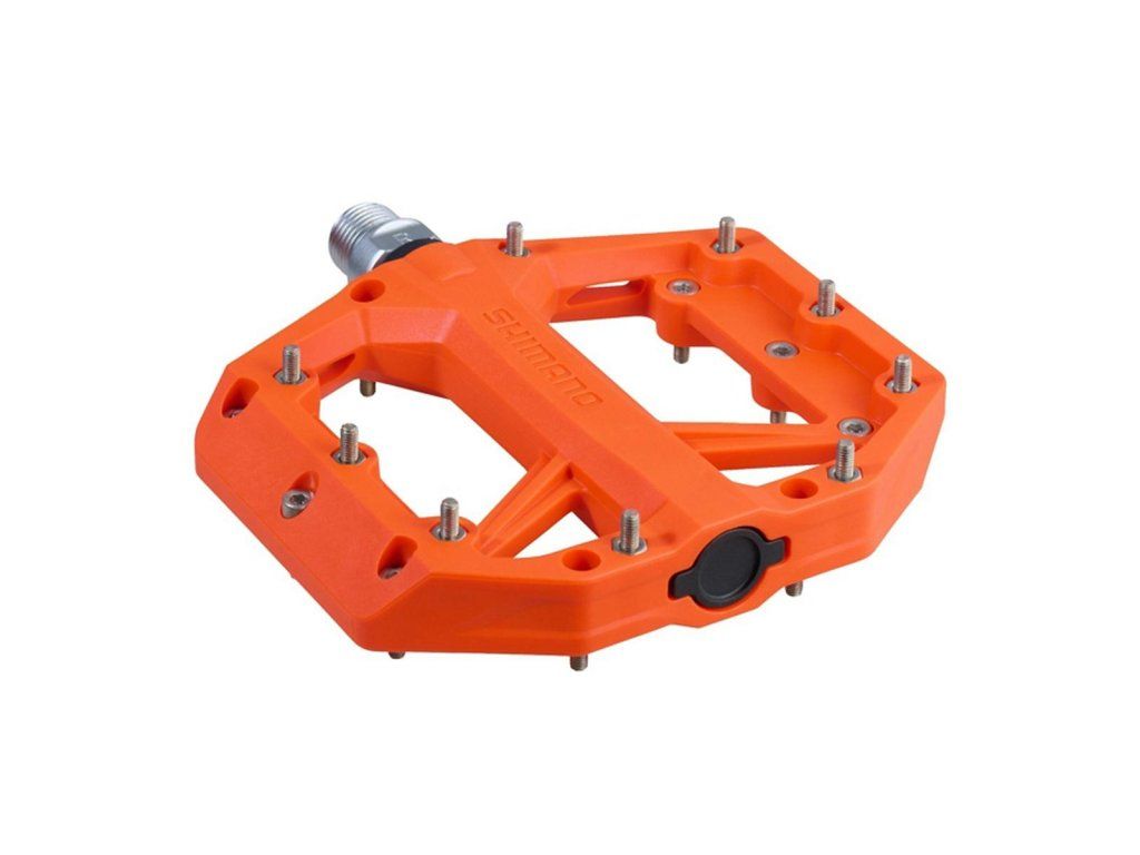 Pedále MTB PD-GR400 bez zámku. Odolné pedále typu Flat pre rôzne jazdné štýly v teréne. Široký tvar pedálu pre lepší komfort, stabilitu a účinnosť šliapania do pedálov. Veľkosť platformy 101x96mm. 9 vymeniteľných pinov na každej strane. Kompozitové telo a oska s odolnou a tuhou konštrukciou.