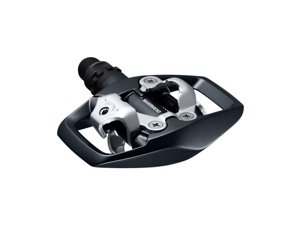Pedále cestné PDED500 konštrukcie SPD. Ľahké s aerodynamickým dizajnom. S obojstranným SPD zámkom. S konštrukciou umožňujúcou nastavenie sily upnutia zarážky. Vhodné pre rekreačné a turistické jazdenie. Vrátane zarážok SM-SH56 , ktoré dokážete otočeným päty do ktorejkoľvek strany.