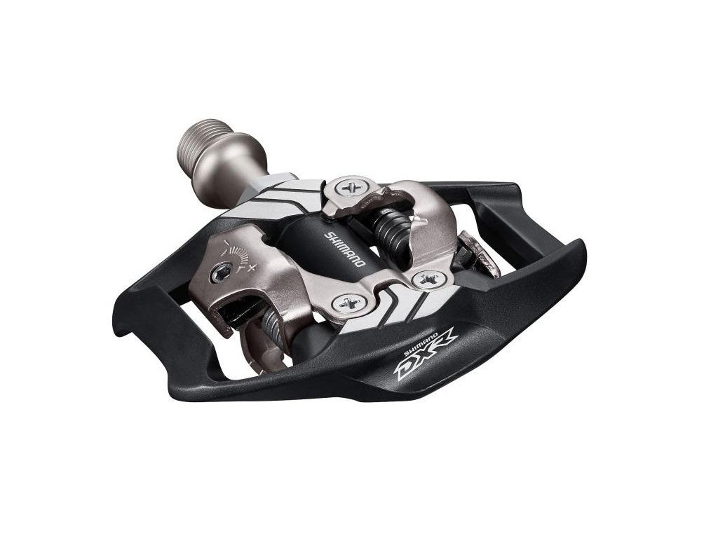 Typ: MTB, Celková váha balenia: 414g, Použitie: Trail/BMX, obojstranné, SPD, čierne, so zarážkami SM-SH51, Materiál: telo pedálu (hliník), oska (chróm+oceľ)