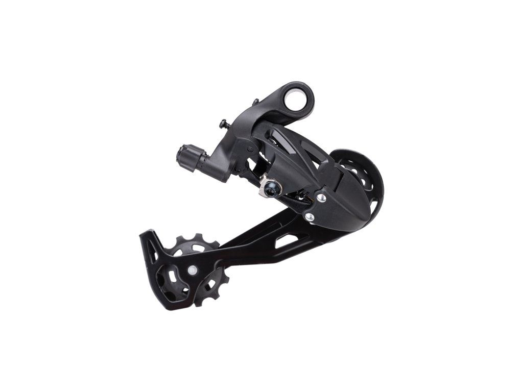 Základný model prehadzovačky pre horské bicykle; Pre 8 rýchlostí; Typ ramienka: dlhé; Montážť: priama; Materiál: oceľ; Farba: čierna; Balenie: OEM
