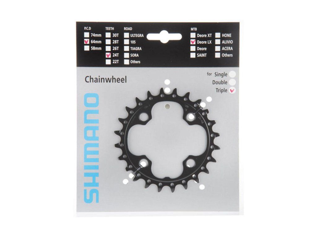 Typ: MTB, Celková váha balenia: 66g, Počet zubov na prevodníku: 24, Prevodníky: 10 rýchlostné, Pre kombináciu prevodníkov: 44/32/24, Počet prevodov: 3x9, Rozteč prevodníkov: 64mm, čierny