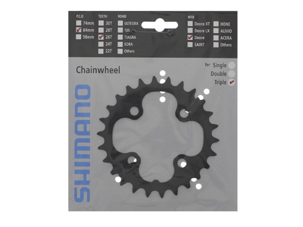 Malý prevodník DEORE/ALIVIO 26 zubov pre kľuky FC-M590/M591/M4060. Bez nábehových zubov. Určený pre radiace systémy 3x9.