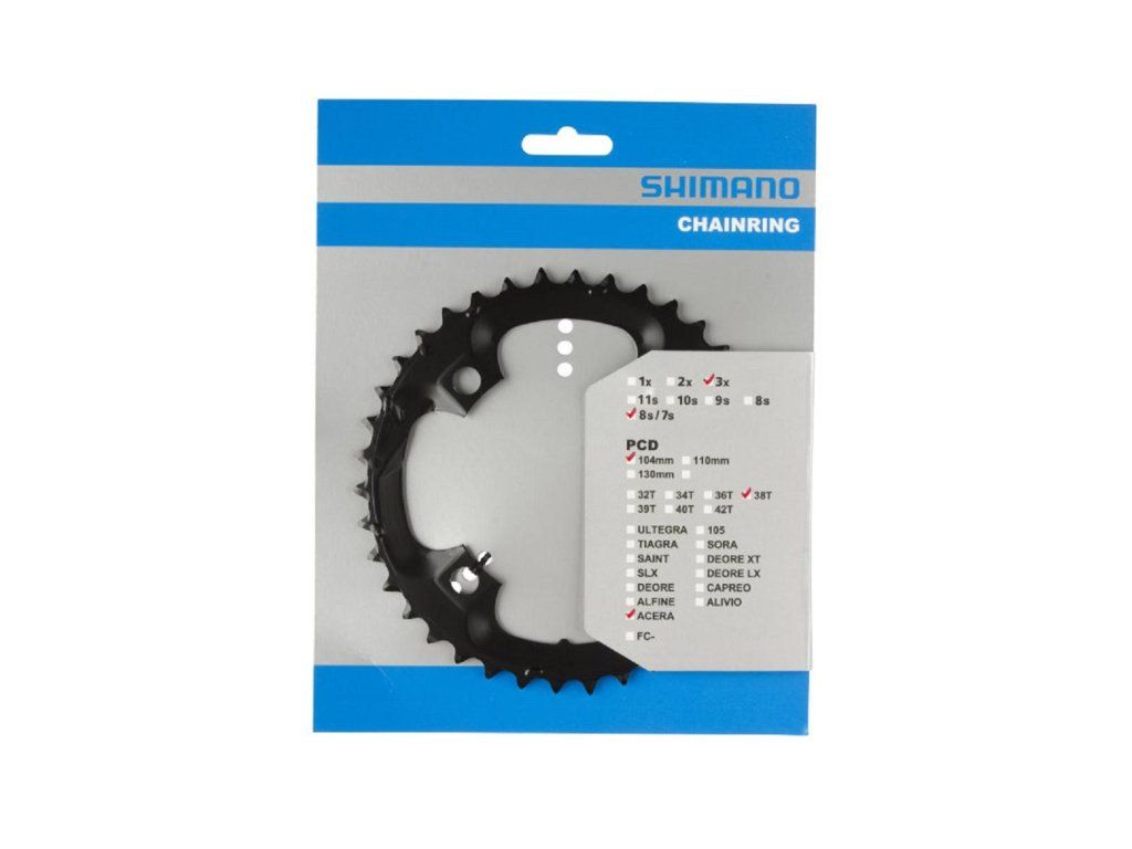 Typ: MTB, Celková váha balenia: 156g, Počet zubov na prevodníku: 38, Prevodníky: 7/8 rýchlostné, Pre kombináciu prevodníkov: 48/38/28, Počet prevodov: 3x7/8, Rozteč prevodníkov: 104mm, čierny
