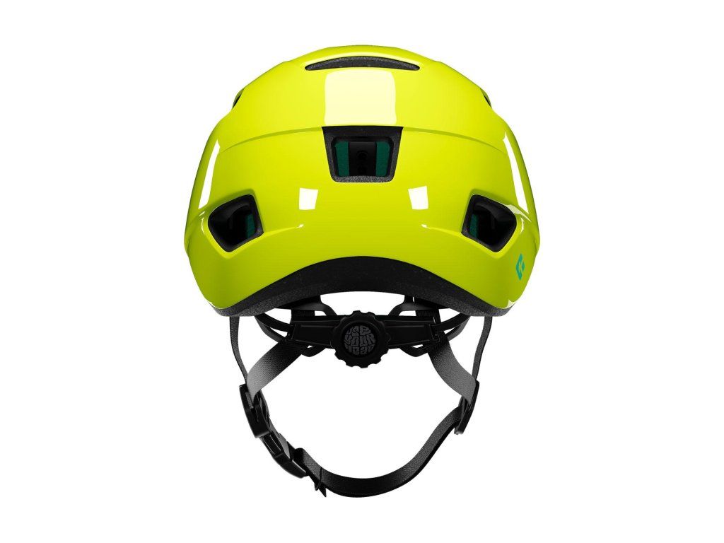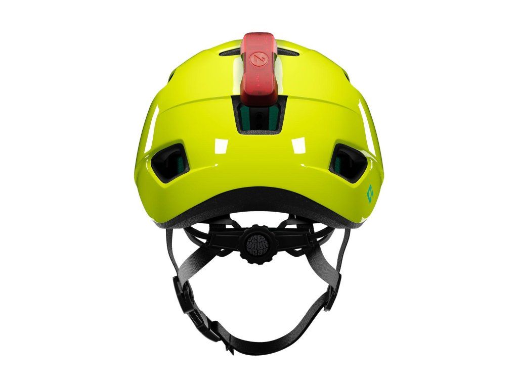 Prilba má ľahko nastaviteľný systém upínania s reflexnou nálepkou „Use Your Head“.