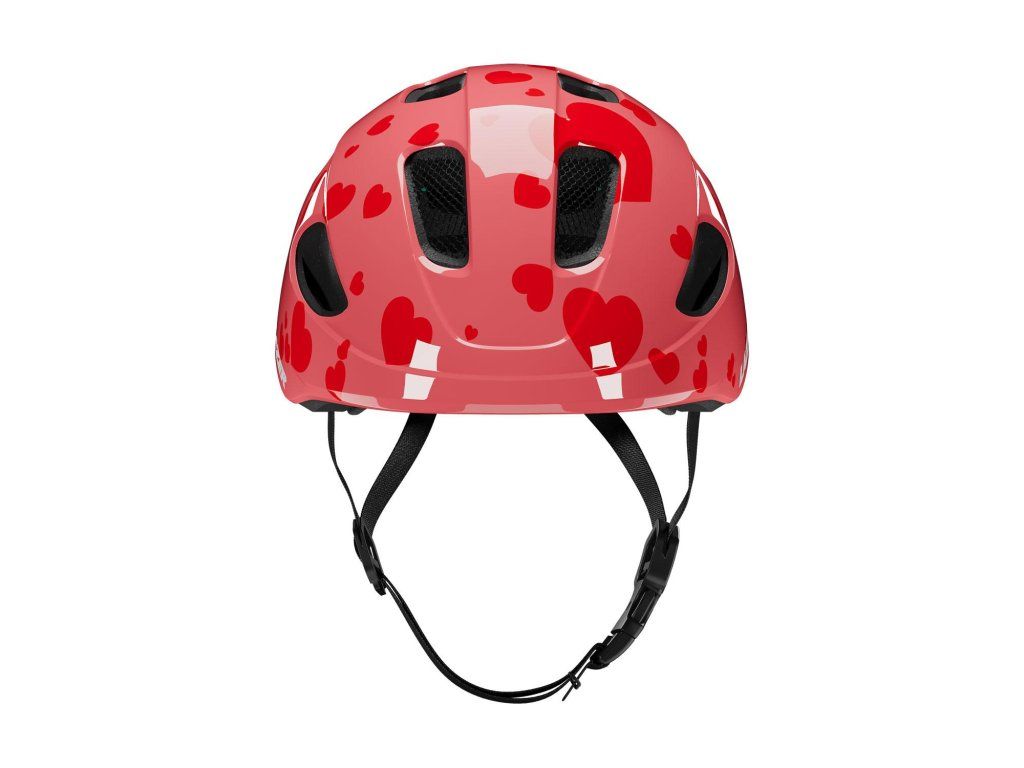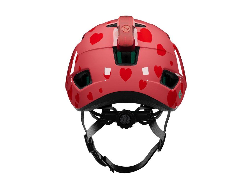 Zadná strana prilby je rovná, aby dieťa mohlo pohodlne sedieť v cyklo sedačke alebo vo vozíku a takisto je prispôsobená aj na nosenie copu.