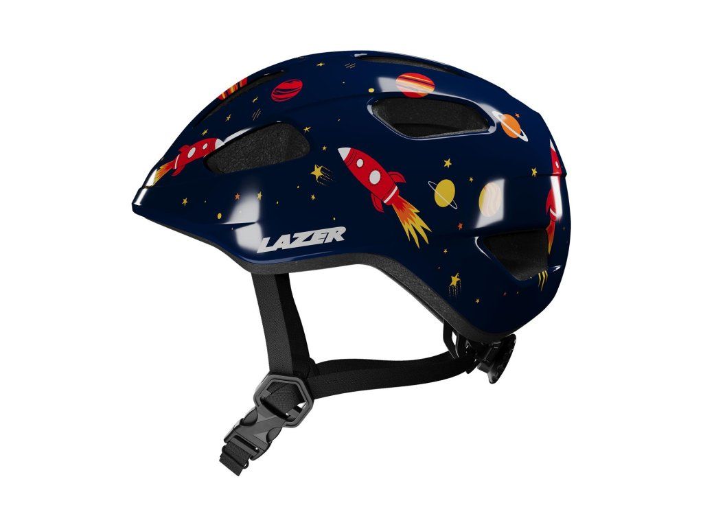 Popruhy prilby sa zapínajú pod uchom, aby sme sa vyvarovali zachyteniu pokožky v prípade zapínania prilby pod bradou.