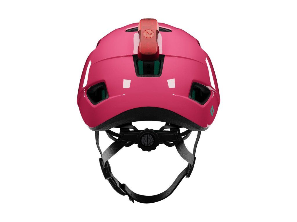 Prilba má ľahko nastaviteľný systém upínania s reflexnou nálepkou „Use Your Head“.