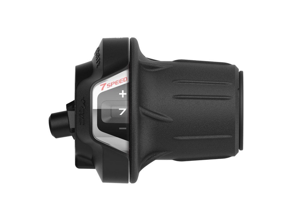 Typ: MTB, Celková váha balenia: 183g, 7 rýchlostné, Pravé, Revo Shift, Typ montáže: Na objímku, s ukazovateľom, čierne, Materiál: Hliník / Oceľ / Plast