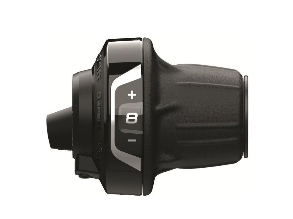 Typ: MTB, Celková váha balenia: 155g, 8 rýchlostné, Pravé, Revo Shift, Typ montáže: Na objímku, s ukazovateľom, čierne, Materiál: Hliník / Oceľ / Plast