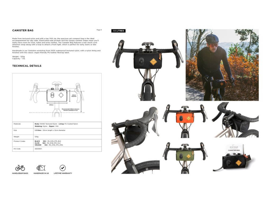 Ručne vyrobené v našej dielni v Yorkshire zo 100% vodeodolného textúrovaného nylonu, s nylonovou podšívkou a doplnené klasickým štítkom Restrap z PU kože.