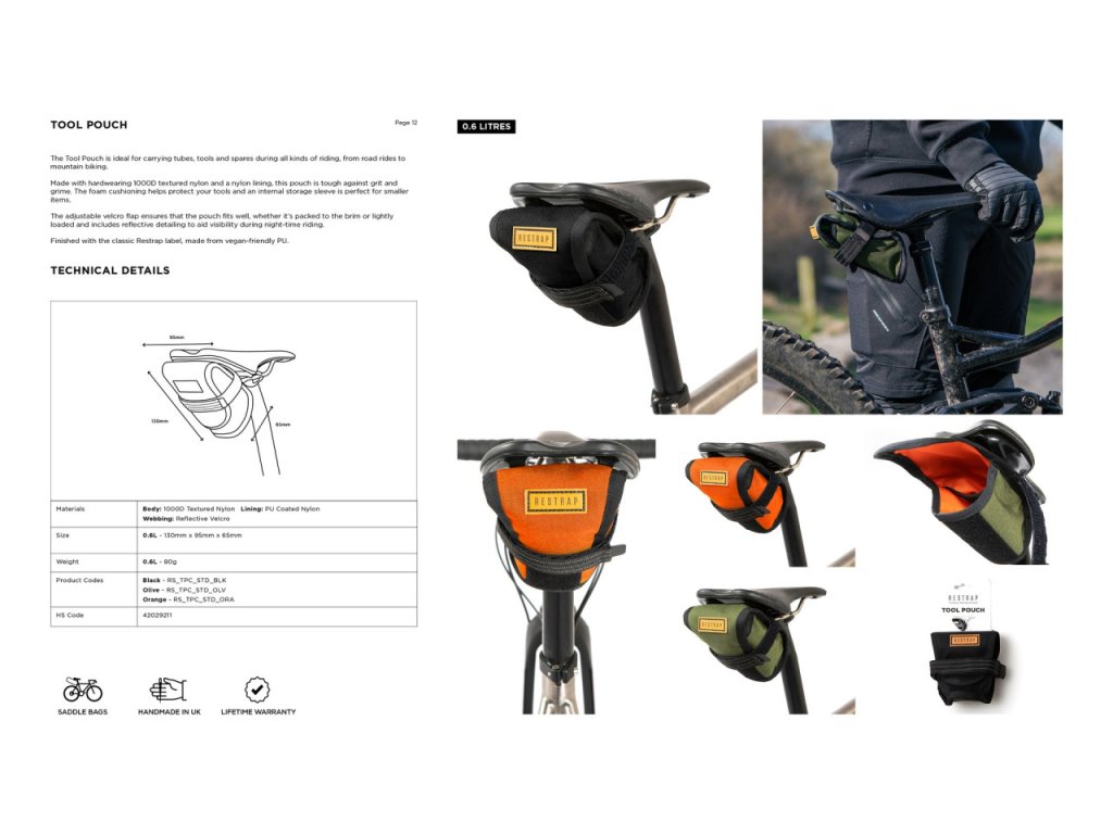 Kapsička je ideálna na prenášanie duší, náradia a náhradných dielov pri všetkých druhoch jazdenia, od cestných jázd až po horskú cyklistiku. Je vyrobená z odolného nylonu s textúrou 1000D a nylonovej podšívky a je odolná voči znečisteniu. Nastaviteľná chlopňa na suchý zips zaisťuje, že puzdro dobre sedí, či už je zbalené po okraj, alebo je málo zaťažené, a obsahuje reflexné detaily, ktoré pomáhajú viditeľnosti počas nočnej jazdy.