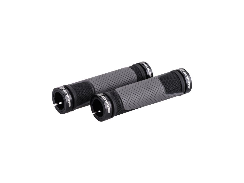 Gumené dvojzložkové gripy plastovom tele; Lock-on systém upevnenia; Farba: šedo-čierna/čierne objímky; Dĺžka 130 mm"