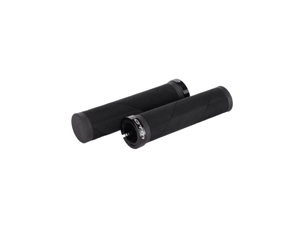 Univerzálne dvojzložkové gumené gripy s otvorenými koncami; Lock-on systém upevnenia; Materiál: plast a guma; Váha: 95g; Dĺžka: 130 mm; Farba: čierna