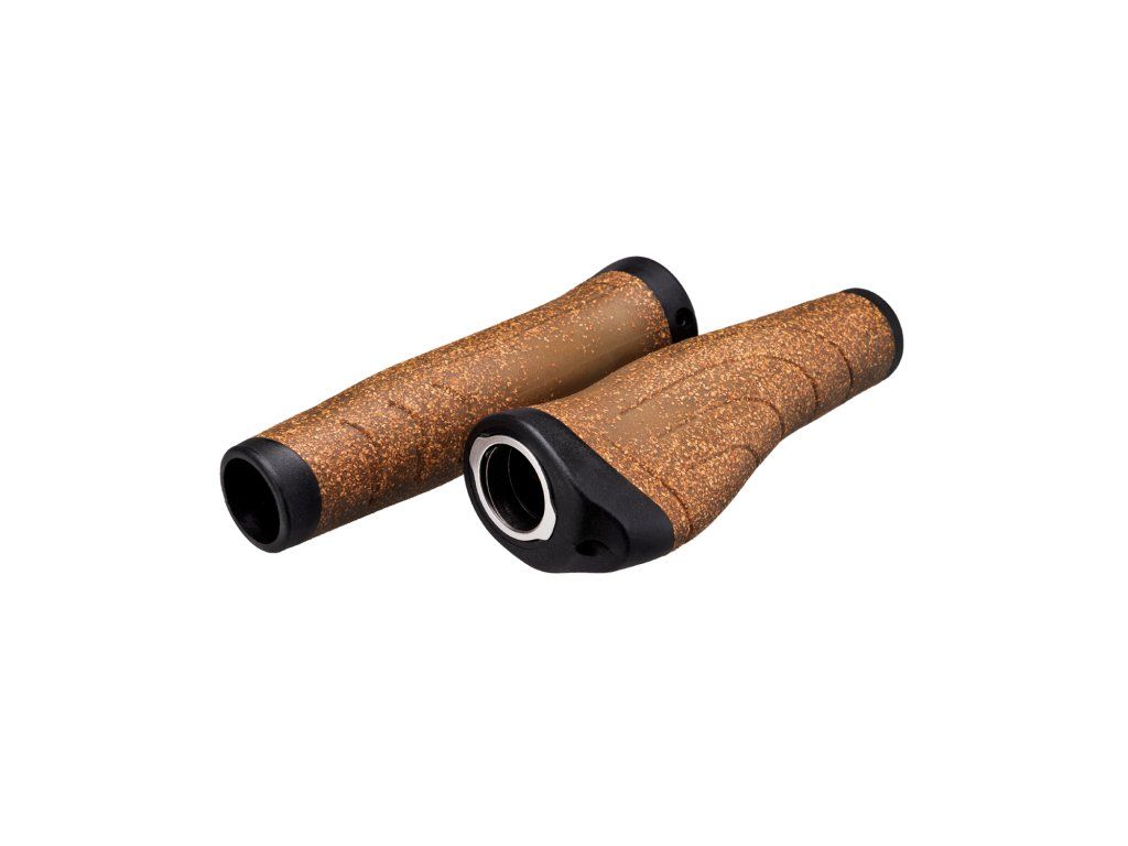 Ergonomické gumené gripy; Dĺžka: 136,5mm; Uzamykateľné z 1 strany; Farba: hnedá (korková napodobenina)"