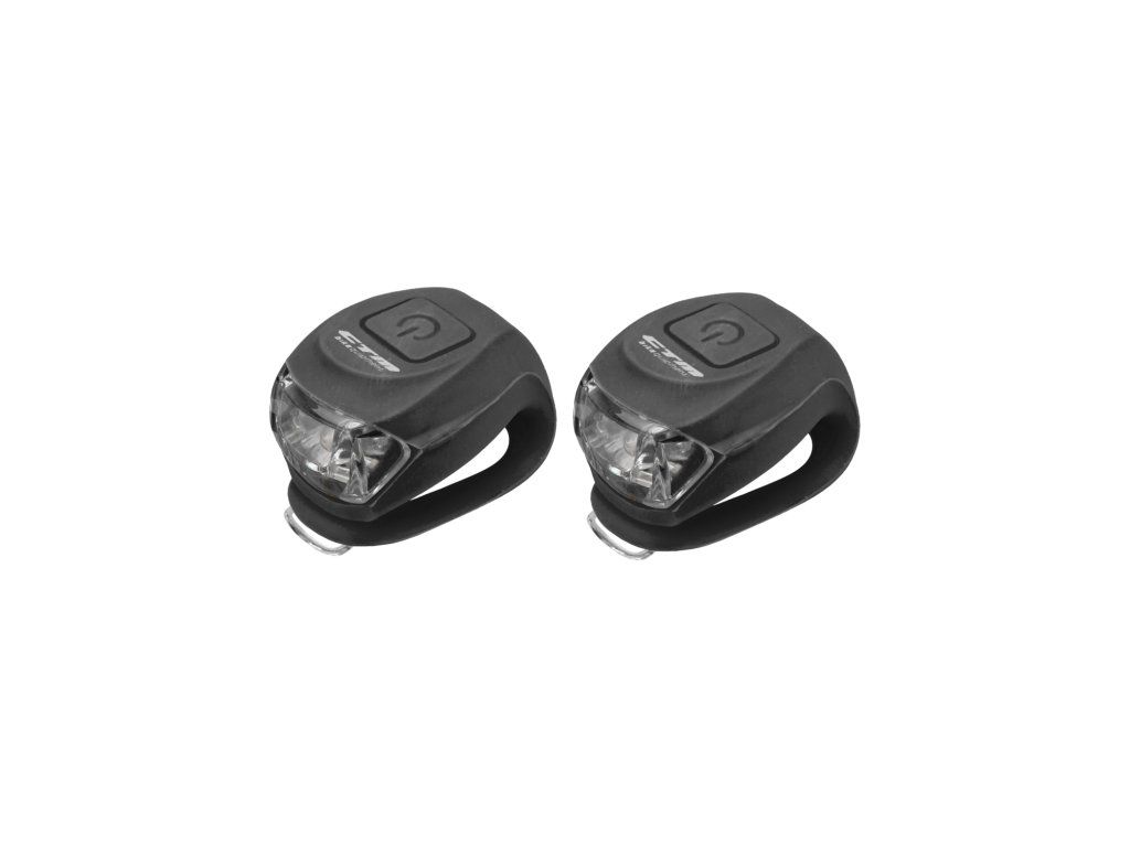 "Sada silikónového mini osvetlenia; Funkcie: blikanie - stále svetlo; Univerzálne uchytenie pomocou gumových očiek; Obsahuje dve blikačky: biele a červené svetlo; Farba: čierna"