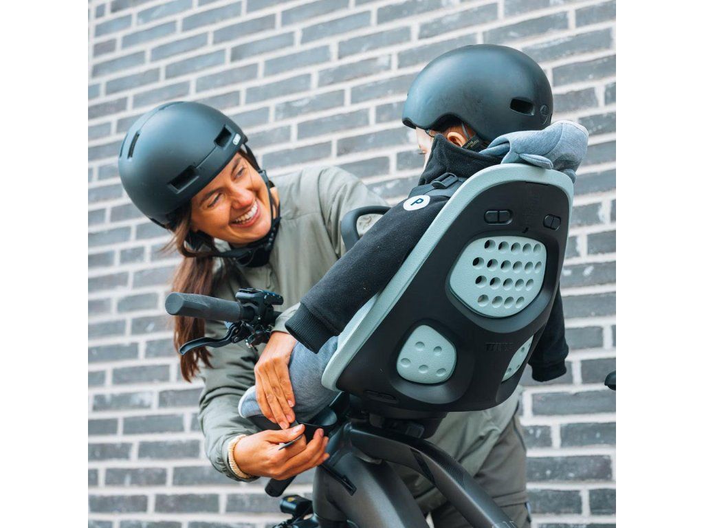 Bezpečnosť: Thule Yepp 2 MINI je vybavené bezpečnostnými pásmi, ktoré sa ľahko nastavujú a zaistia dieťa v sedadle. Pásy sú navrhnuté tak, aby boli maximálne bezpečné a zároveň jednoduché na použitie pre rodičov.
