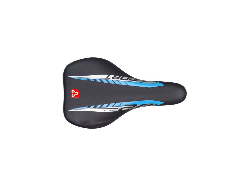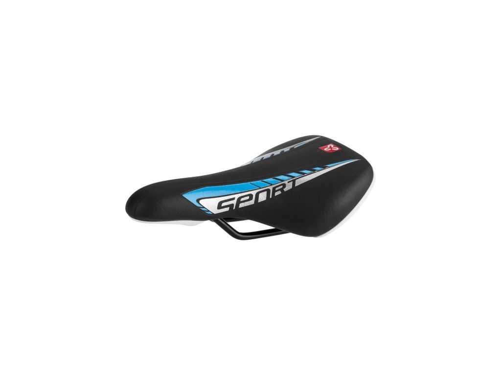 Športové detské sedlo, CrMo lyžiny; Určené pre 16'' bicykle; Rozmer: 220mmx140 mm; Váha: 330g; Farba: čierna/modrá"