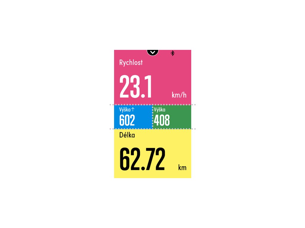 Chceš na displeji počas jazdy radšej vidieť nadmorskú výšku alebo pokyny na odbočenie? Žiadny problém: Zobrazené tréningové hodnoty môžeš kedykoľvek počas jazdy meniť a farebne označovať bez toho, aby si musel/a zastaviť aktuálny záznam dát.